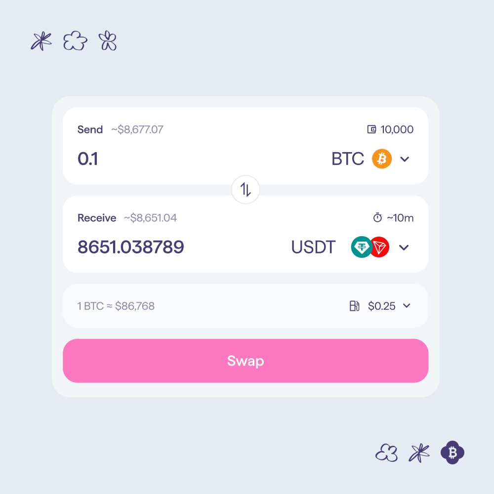 Another leaf has unfurled in the Garden. Say hello to TRON; the network processing more stablecoin volume than anywhere else in crypto. With this launch, you can now swap Bitcoin and other supported assets from any of our supported chains directly into USDT on TRON.